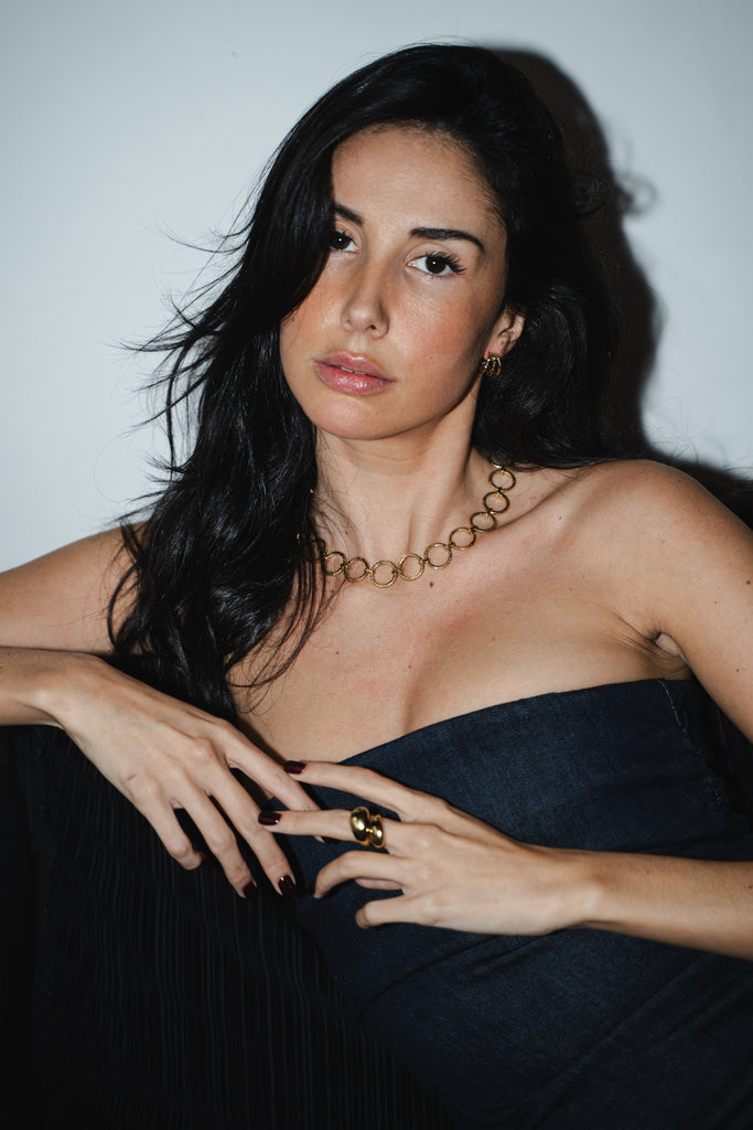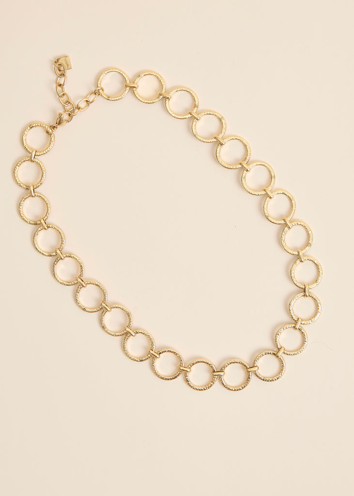 Affirmez un style chic et lumineux avec le collier Barry, le bijou idéal pour illuminer votre décolleté avec finesse. Ce collier se distingue par sa chaîne composée d'une série de cercles délicatement martelés et ajourés. Le travail du martelage capte la lumière avec élégance, tandis que le design ajouré confère à la pièce une légèreté et une modernité remarquables.