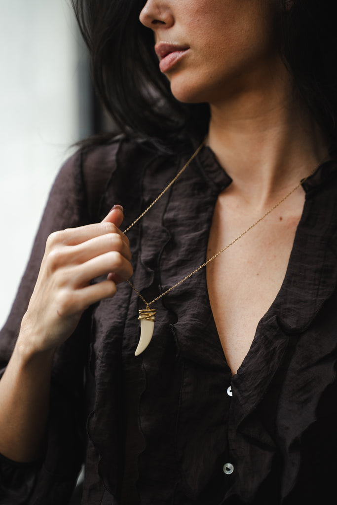 - Bobo Chic : Le pendentif corne et la longueur du sautoir créent un style décontracté, élégant et inspiré du voyage.