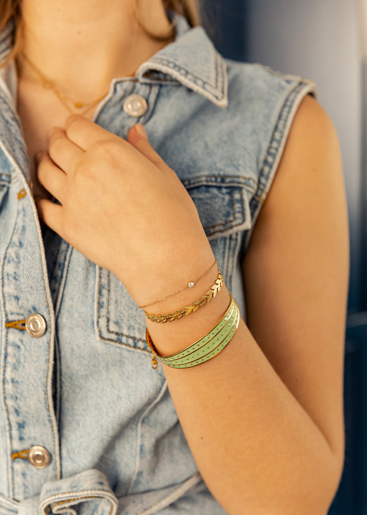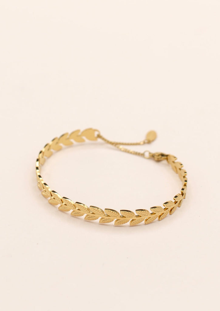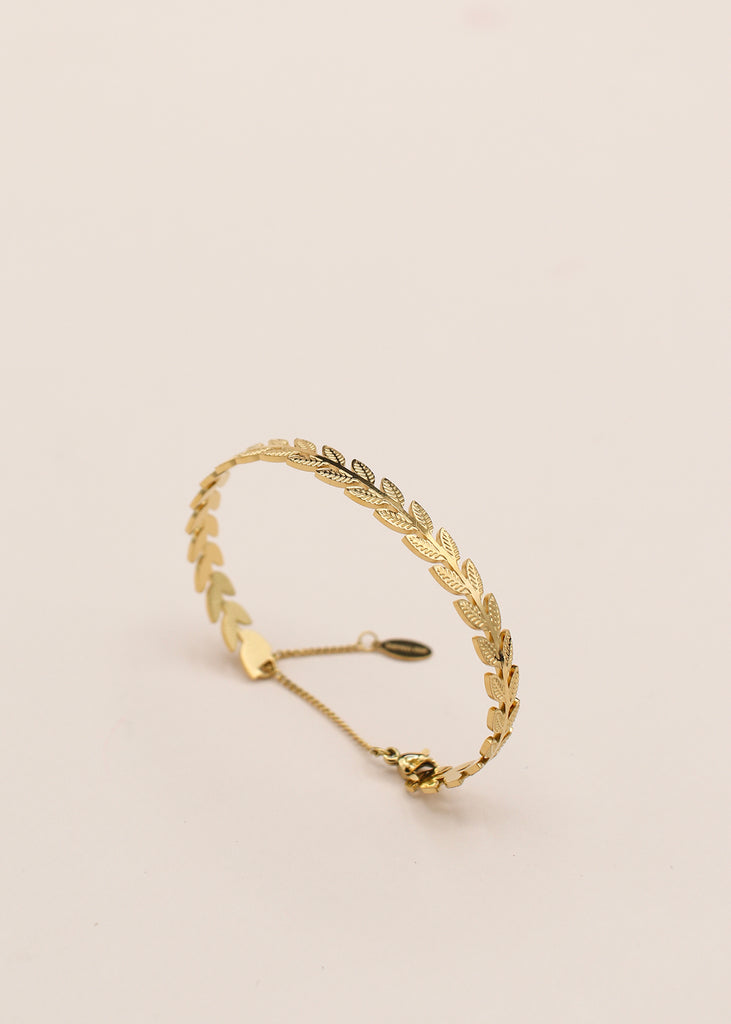 Jonc motif feuilles de laurier. Fermoir mousqueton pour élargir ou resserrer le jonc.