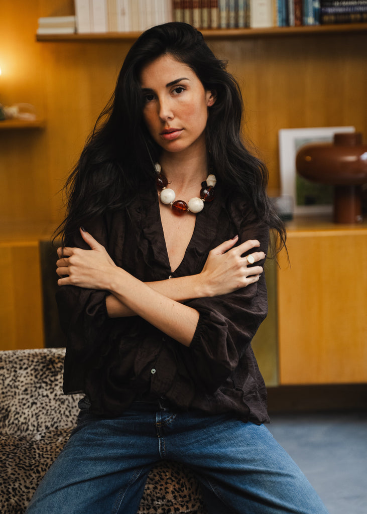 Découvrez notre collier AMAZONITE, notre collier "statement" à l'allure bohème et vintage irrésistible.